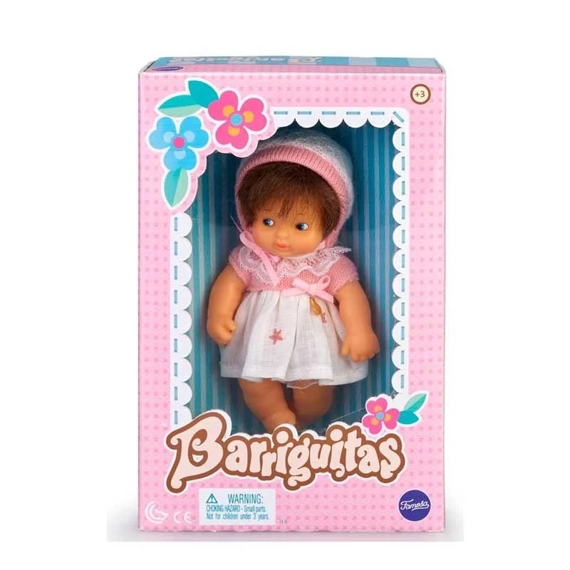 Barriguitas Bebés son tus muñecas de siempre, de toda la vida. Están fabricadas en un delicado material de vinilo suave y detallado. Tiene unas extremidades y cabeza articulada que permite movimientos como los de un bebé. Hay distintos modelos para elegir con sus trajecitos súper realistas ¡Colecciona los Bebés Barriguitas de siempre!. Medidas aproximadas de la muñeca: 14 cm de alto, 7,5 cm de ancho y 3,5 cm de fondo. Edad recomendada: +3 años. Famosa. Ref.: 700015556 700015695