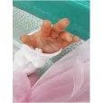 Mar es una muñeca bebé reborn de silicona de Muñecas Guca. Mar tiene una sensación de tacto real, alucinarás con las rojeces de la cara y sus brazos y piernas articulados. Mar es una muñeca hiperrealista y especial, por eso debe ser tratada y cuidada cómo un bebé recién nacido. Es una muñeca sólida, y no hueca. No se pueden separar sus extremidades, todas sus piezas son de silicona. Tiene un peso aproximado de 3kg, para simular el peso de un bebé ´real´. Se aconseja no dar tirones a las extremidades así como a los dedos de las manos y los pies ni lengua. A modo de mantenimiento es aconsejable, cuando se perciba que el bebé recoge pelusas, aplicar talco con una brocha de cerdas suaves. No mojar la cabeza. Se puede bañar, para ello usar jabón natural. Se recomienda no usar toallitas con alcohol ni colonias, no exponer a temperaturas extremas, tanto frío como calor, no dejar al alcance de mascotas, no dar tirones a las pestañas y no intentar sacar los ojos. Muñecas Guca. Ref.: 18053.
