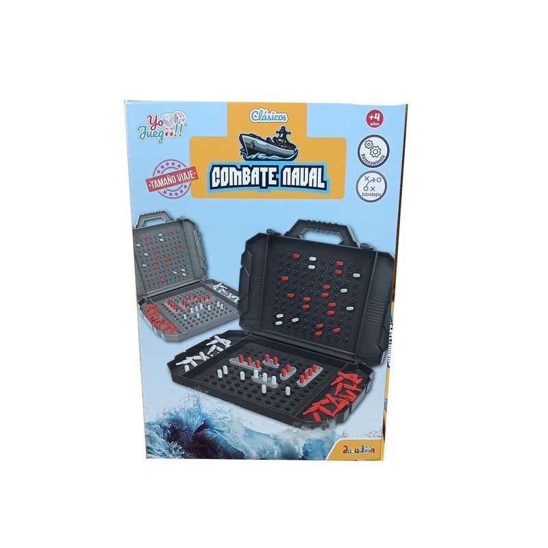 El juego de mesa Combate Naval pertenece a la marca exclusiva Yo Juegoo de Juguetoon. Diviértete jugando al Guerra Naval con los amigos y con la familia. El juego consiste en hundir la flota de barcos de tu adversario. Cuando no quede ningún barco en pie, ¡habrás ganado!. Los niños desarrollarán la capacidad de razonamiento, la habilidad social y la coordinación ojo-mano. Contiene 2 tableros con tapas, 2 sets de barcos de guerra, 2 sets de chinchetas rojas y 4 sets de chinchetas blancas. Juguetoon. Ref.: 24-211. Edad recomendada: +4 años.