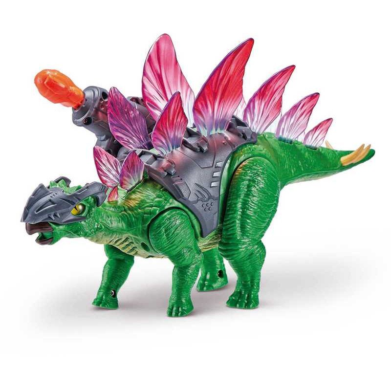 ¡Juega con dinosaurios de manera diferente y fantástica con Dino Wars Stegosaurus! ¡Tiene un lanza misiles en el lomo del donosaurio! Con armadura en la zona de la cabeza, este Stegosaurus anda y ruge. Puede iluminarse. Necesita pilas (x3 AAA /LR03). Juguetoon. Ref.: 22-333. Edad recomendada: +3 años.