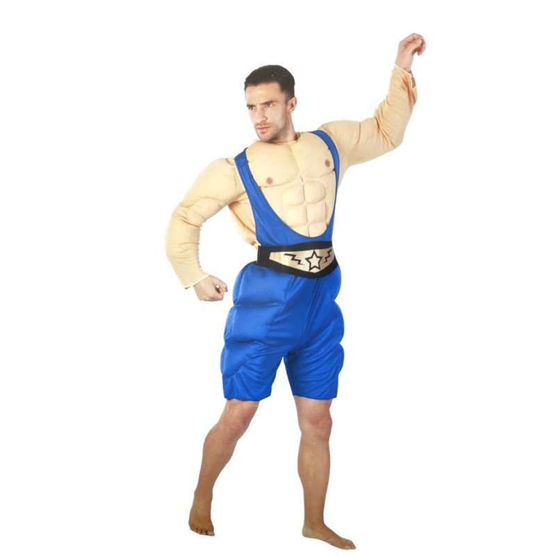 Un disfraz de luchador acolchado para adulto es una prenda diseñada para emular el aspecto de un luchador de lucha libre profesional, con un toque cómico y exagerado. Este tipo de disfraz suele ser una opción popular para fiestas temáticas, eventos de disfraces o incluso para Halloween, debido a su naturaleza divertida y llamativa. Es un mono completo con camiseta y pantalón corto azul acolchado. Incluye un cinturón negro con logotipos de lucha libre. Talla M. Juguetoon. Ref. 83360.
