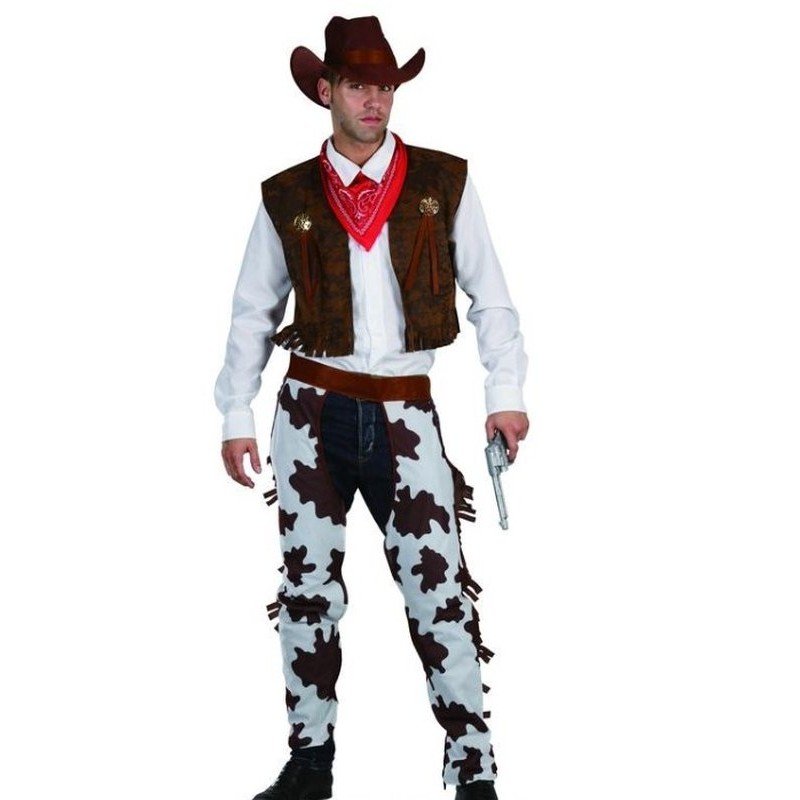 Un disfraz de vaquero adulto consiste en varios elementos que evocan la estética clásica del "Old West" o del Lejano Oeste. Este disfraz incluye un cubre pantalón de vaquero en color marrón y blanco con cinturón que agarra la cintura. Lleva un chaleco típico de cowboy con dos chapas que simulan las de un Sheriff y un pañuelo rojo que cubre el cuello. Talla M. No incluye sombrero ni pistolas. Juguetoon. Ref. 89125M. Edad recomendada +3 años.