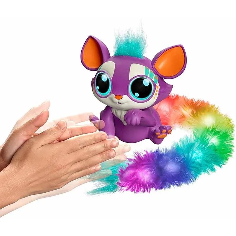 Lil Gleemerz Adorbrite Lila es un ser mágico muy colorido ya que su luminosa cola de LED que se vuelven del color del arco iris. Responde al tacto y emitirá sonidos y frases toques el hocico de Lil Gleemerz Adorbrite, tiene 100 reacciones entre las que podrás encontrar que: ronronea, gruñe, se tira pedos, dice frases divertidas, realiza impresionantes espectáculos de luces y hasta juega, además tiene 3 modalidades de juegos que deberás descubrir. Dice frases muy curiosas y son realmente adorables, querrás acariciarlos todo el día, Además son muy manejables para llevártelos a cualquier lado que tu quieras.Edad recomendada +5años. 3 Pilas AAA. Medidas aproximadas: 11 cm de alto, 9 cm de ancho y 7 cm de fondo. Mattel. Ref.: GLL06