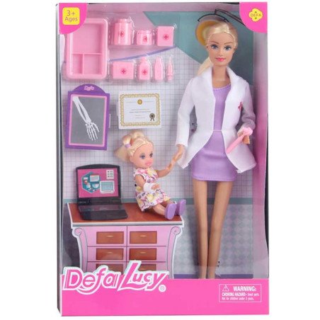 Con la muñeca Lucy Pediatra podrás simular y divertirte con lo que quieres ser de mayor. Cuida y cura a la pequeña que ha venido enferma. La paciente tiene el pelo rubio con coletas. Este set viene con varios accesorios como; portátil, radiografía,autensilios de enfermería, ¡y mucho más! Juguetoon. Ref.: 22-022. Edad recomendada: +3 años.