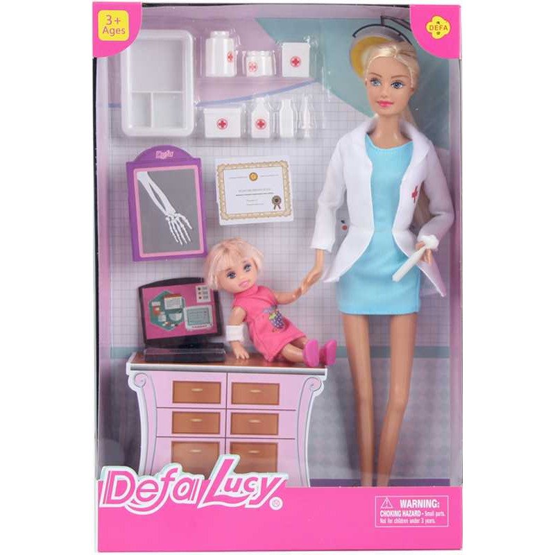 Con la muñeca Lucy Pediatra podrás simular y divertirte con lo que quieres ser de mayor. Cuida y cura a la pequeña que ha venido enferma. La paciente tiene el pelo corto rubio. Este set viene con varios accesorios como; portátil, radiografía,autensilios de enfermería, ¡y mucho más! Juguetoon. Ref.: 22-022A. Edad recomendada: +3 años.