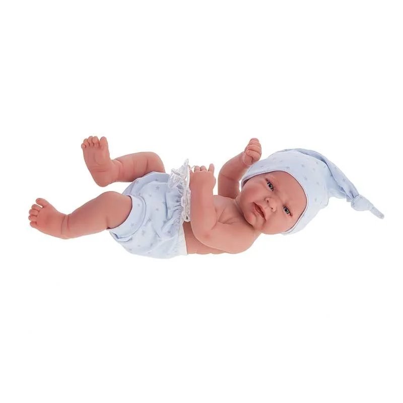Leo Ranita es un muñeco recién nacido de Antonio Juan. Leo es un muñeco de 42 cm aproximadamente, está sexado, no tiene pelo y su cuerpo es de vinilo. Incluye gorro, pantalón y chupete. Muñecas Antonio Juan. Ref.: 5077. Edad orientativa: +3 años.