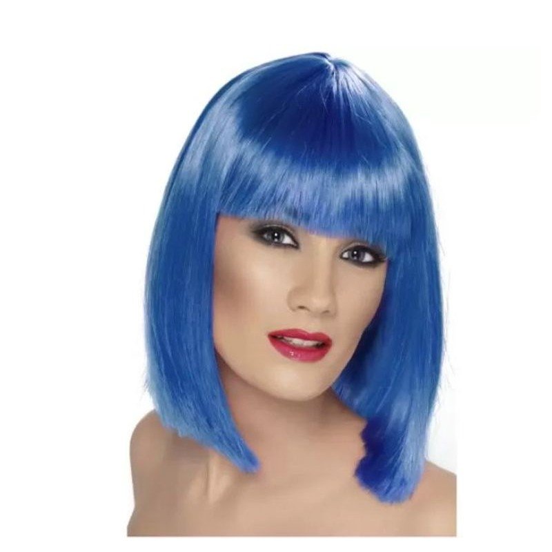 Peluca corta con flequillo azul