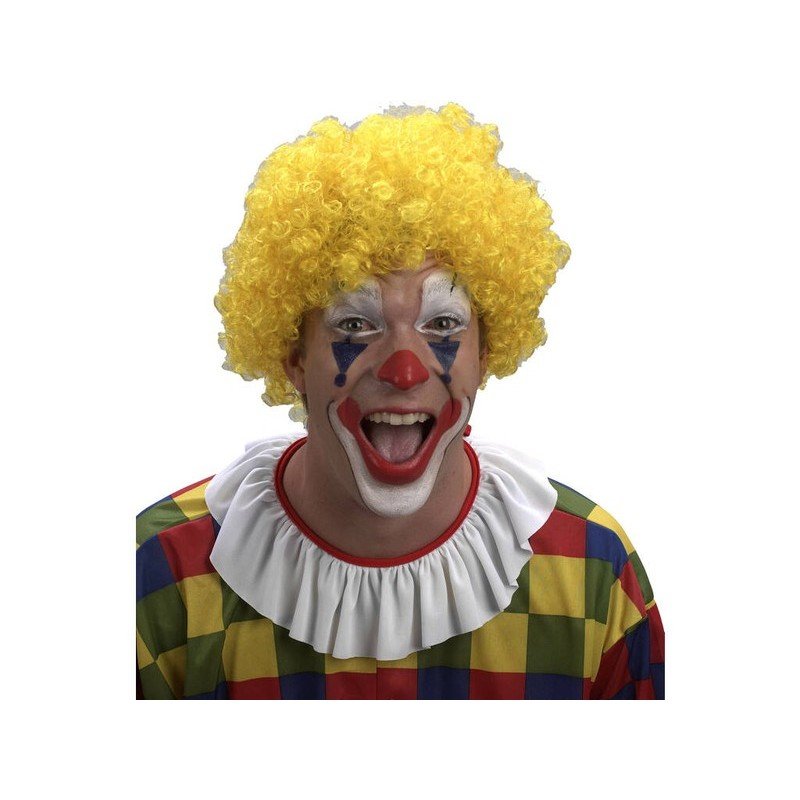 Esta peluca de payaso en color amarillo suele ser volumétrica y muy llamativa. Hecha de fibras sintéticas, tiene un aspecto esponjoso y rizado, lo que le da un toque divertido y extravagante a tu disfraz de payaso. Serás el payaso más divertido de la fiesta. Talla única. Juguetoon. Ref. 68003.