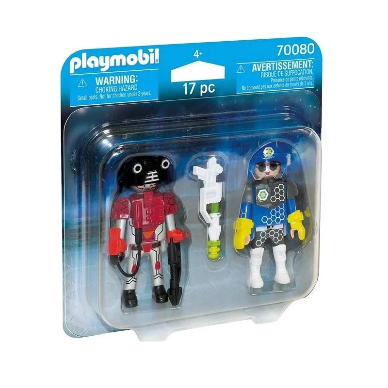 En el futuro también habrá un Policía detrás de un Ladrón, pero en esta ocasión será en el Espacio. Con Playmobil Space la lucha entre Policia y Ladrón será super dínamico con el uso de pistolas laser, trajes especializados para recibir oxígeno y gafas ultra modernas laser . Edad recomendada 4 años. Playmobil. Ref.: 70080