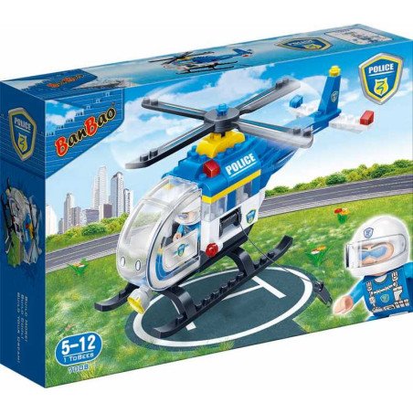 ¡Monta tu propio helicóptero de rescate de policía con este fantástico set de bloques! Si siempre has soñado en ser policía, este juego es ideal para ti. Vigila la ciudad desde los cielos con este set de 122 piezas. ¡En el lateral del helicóptero viene con un gancho de salvación! Los bloques son compatibles con otras marcas. Juguetoon. Ref.: 22-098. Edad recomendada: +5 años.