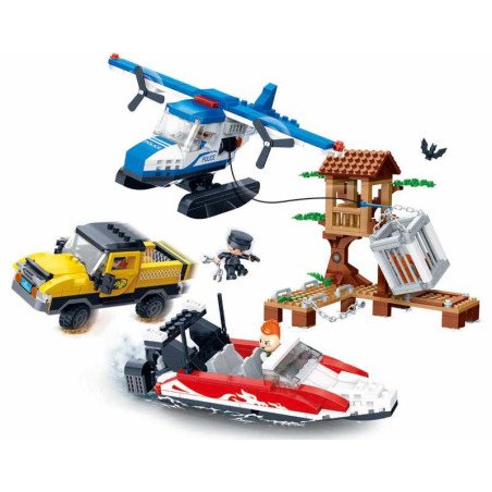 Con este set de bloques infantil tendrás que perseguir al malo. ¡Capturalo antes de que escape! Este set viene con 561 piezas y 4 figuritas. Construye una avioneta, una lancha, un todo terreno, ¡y mucho más! Los bloques son compatibles con otras marcas. Juguetoon. Ref.: 22-052. Edad recomendada: +6 años.
