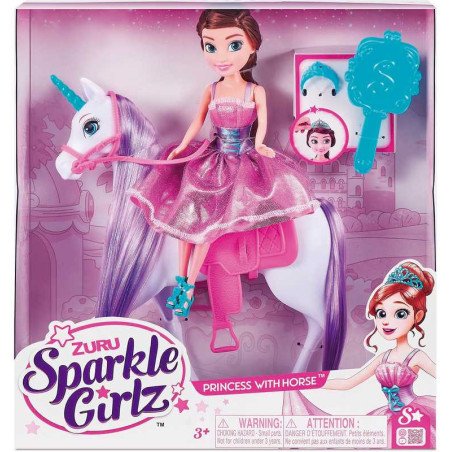 Juega en tu mundo de fantasía con esta preciosa princesa de Sparkle Girlz junto con su unicornio mágico. La princesa tiene la melena pelirroja, y viene con un peine y su corona real. Viene vestida con un hermoso vestido brillante de color rosa. Juguetoon. Ref.: 22-315. Edad recomendada: +3 años.