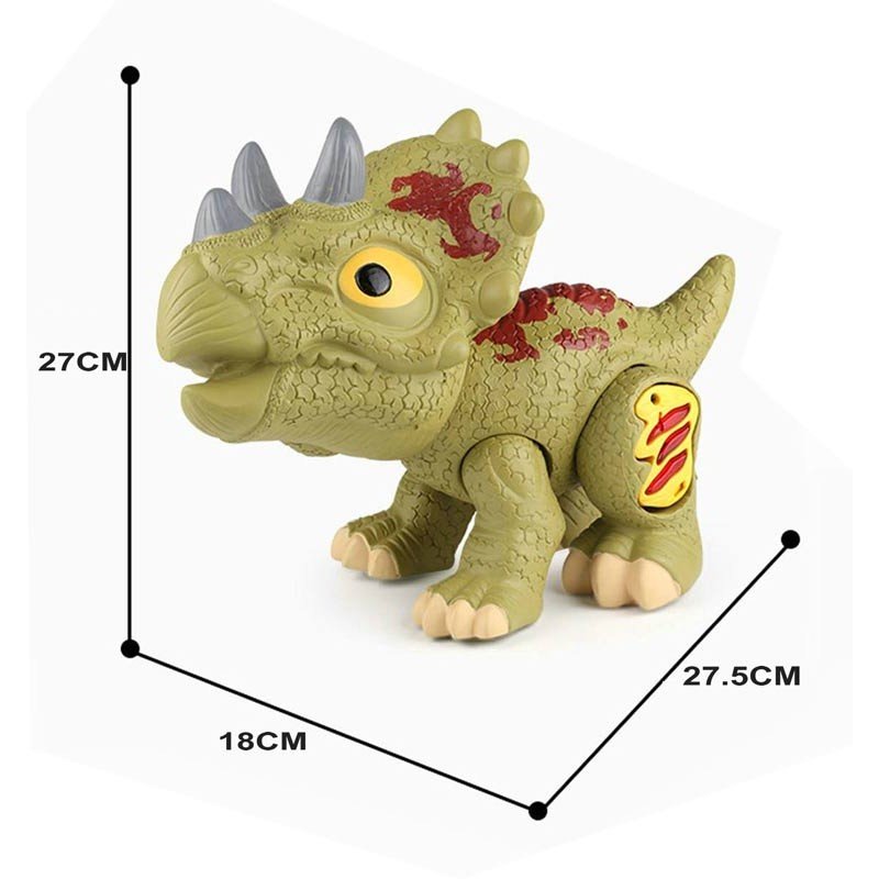 El Triceratops era un dinosaurio que podía medir hasta 9 metros de largo. Este dino de juguete solo tiene 27.5 cm de longitud, pero está animado con luces y sonidos. ¡Es una gran opción para que los peques empiecen su andadura por este maravilloso mundo jurásico! Además de ser un juguete, es una herramienta educativa que estimula la imaginación y el aprendizaje de los niños sobre los dinosaurios y todo lo que les rodea. Este juguete está dotado de luces y sonidos que recrean los rugidos de estas feroces criaturas. Además, su cabeza y piernas son movibles. Dimensiones: 27 cm de alto, 18 cm de ancho y 27.5 cm de profundo. Wild Zoo. Ref.: 23-580. Edad recomendada: +3 años.